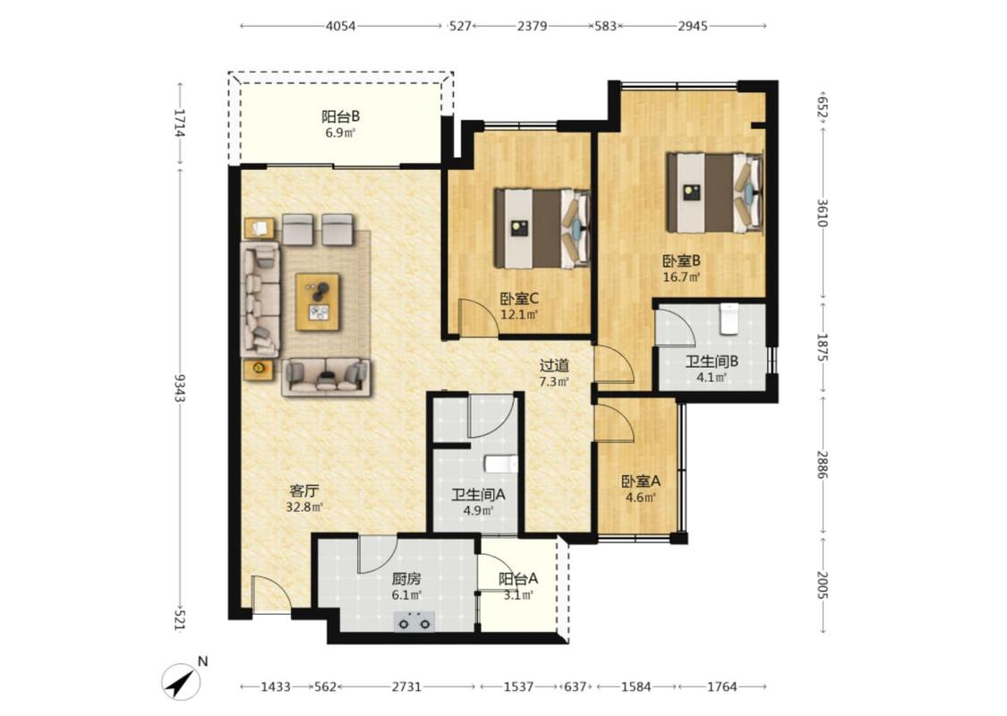 3室1厅 北辰香麓