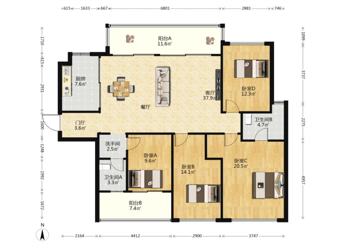4室2厅 仁恒海棠公园无界