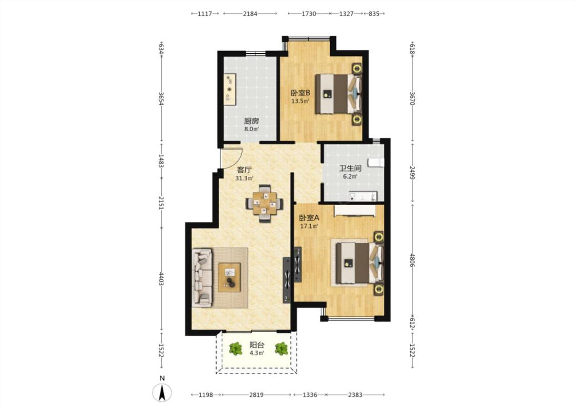 2室1厅 顺驰泊林