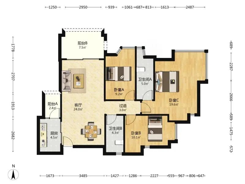 3室1厅 新月明珠花园