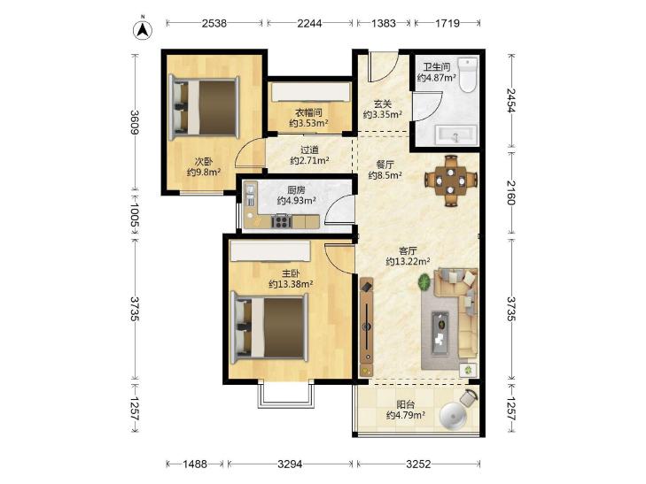 2室1厅 满庭芳嘉园