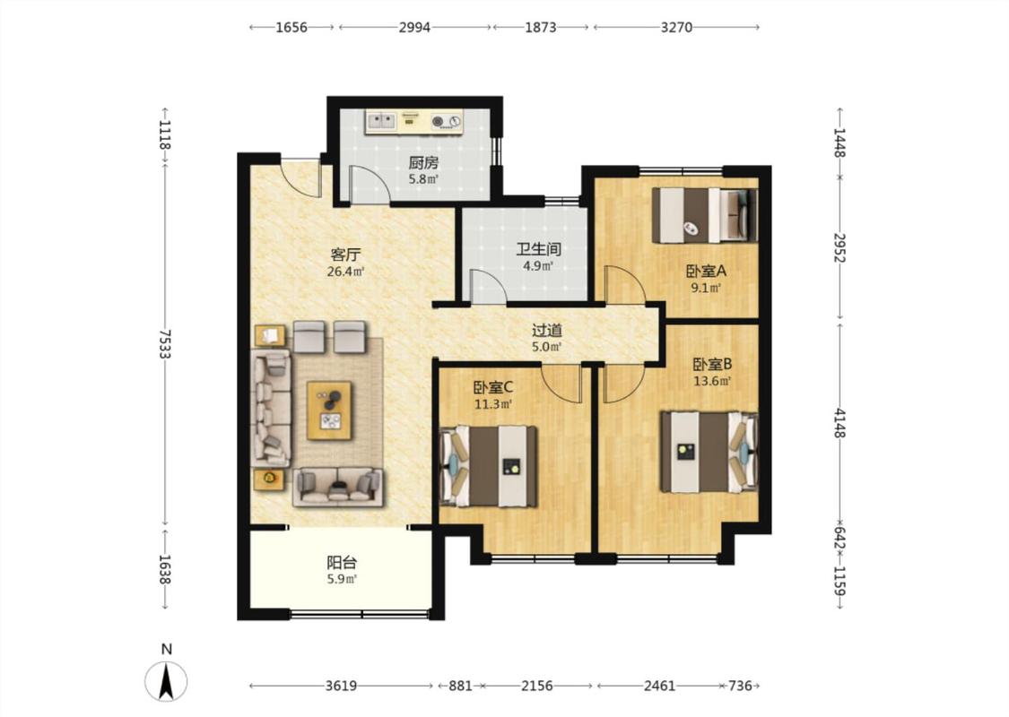 3室2厅