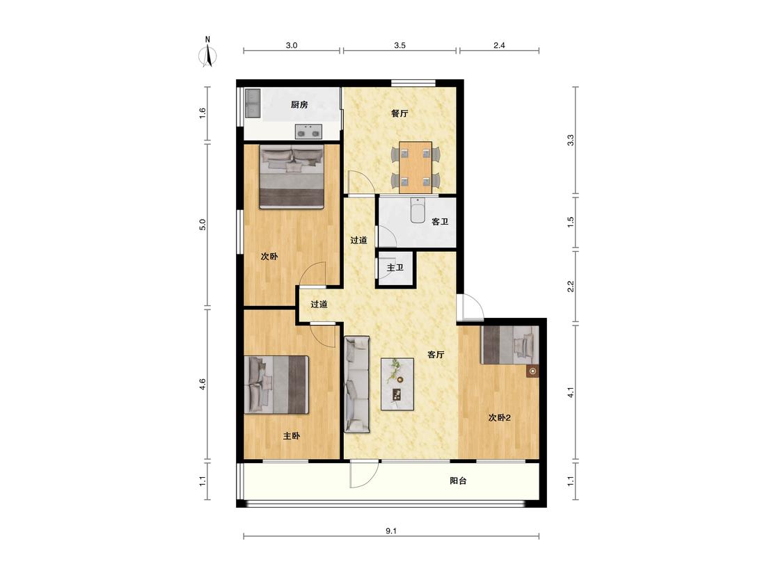 3室2厅
