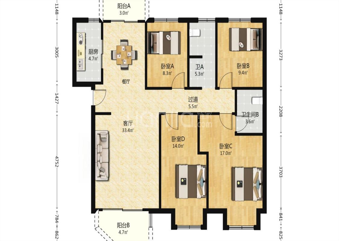 4室2厅 瀚海尔湾
