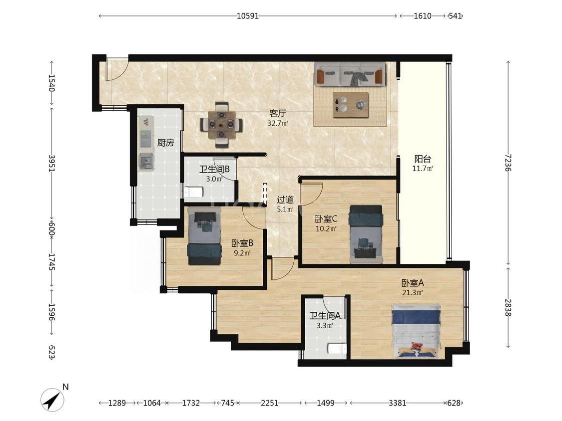 3室1厅