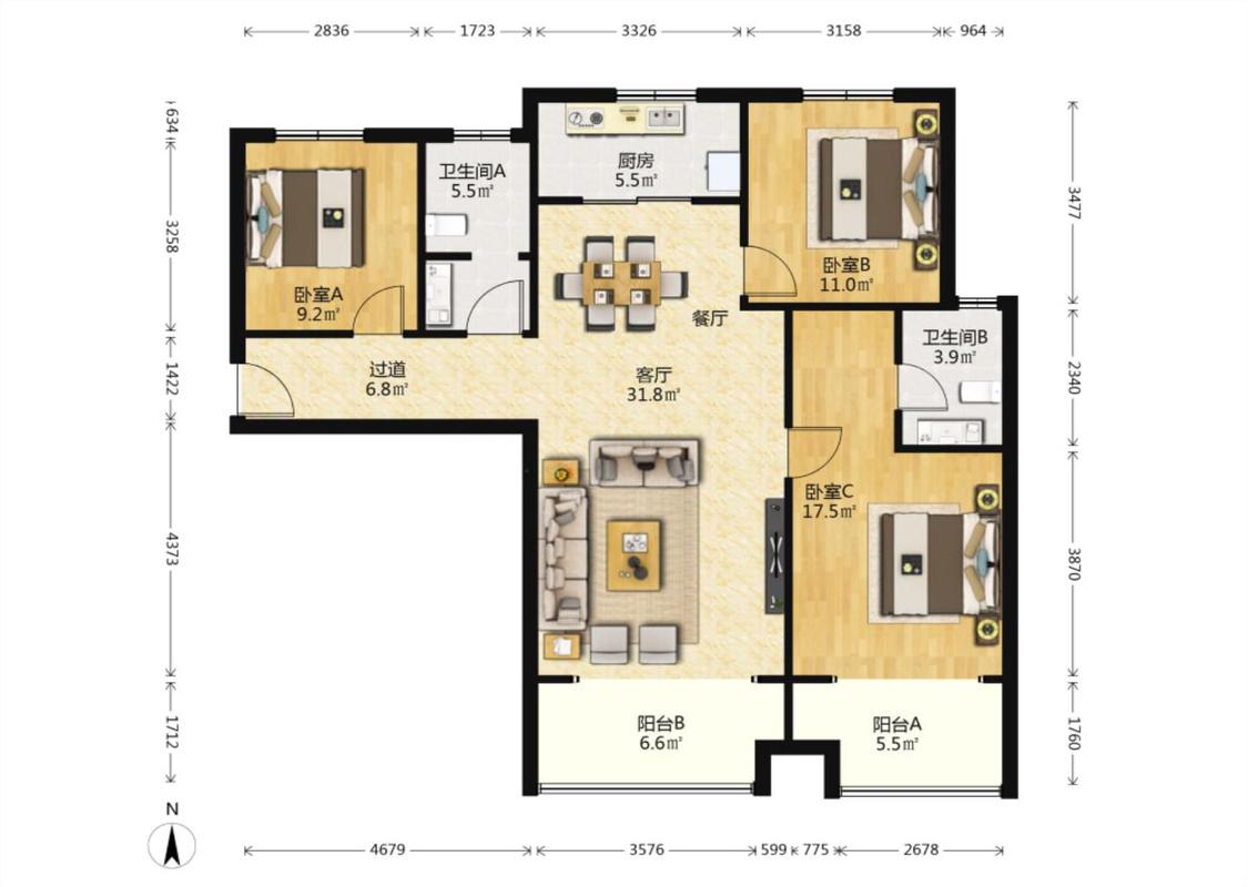3室1厅
