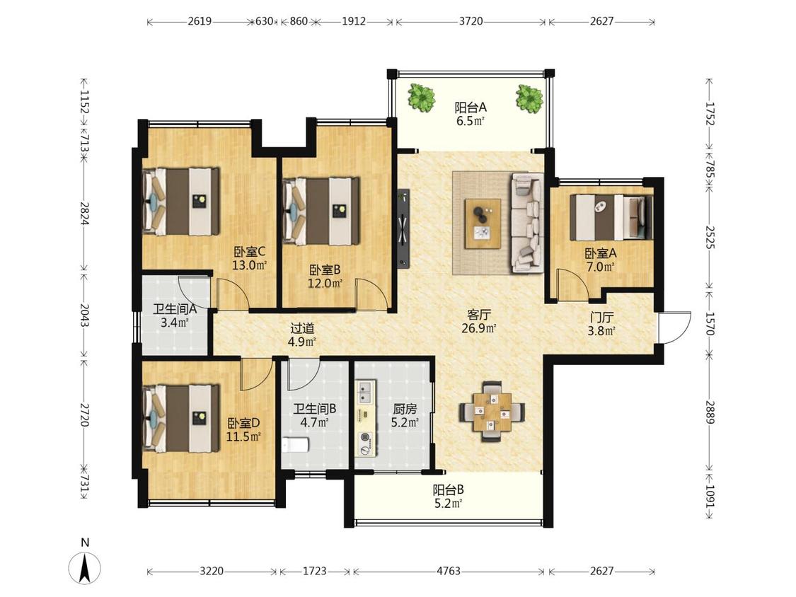 4室1厅 保利中央海岸