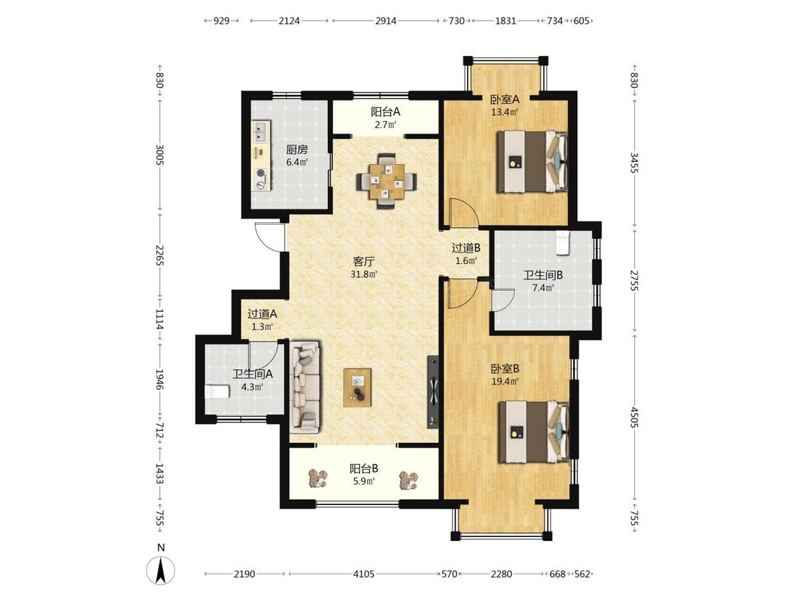 2室2厅