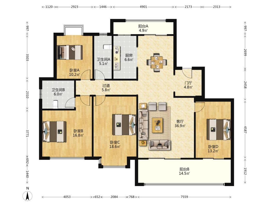 4室2厅 海航豪庭(北苑一区)