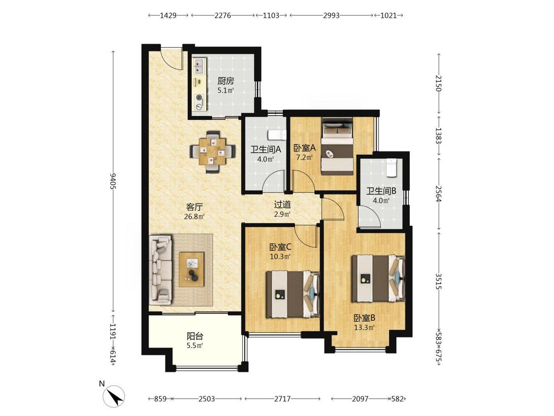 3室2厅