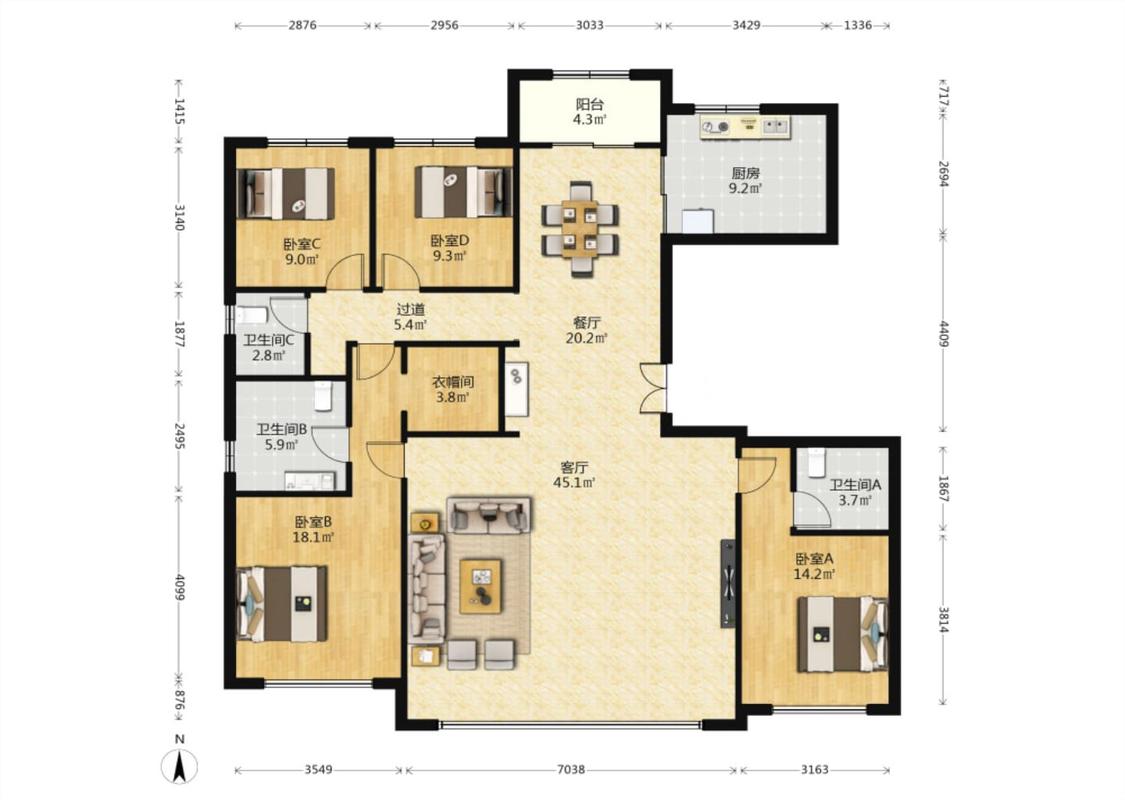 4室2厅 中粮奥体壹号