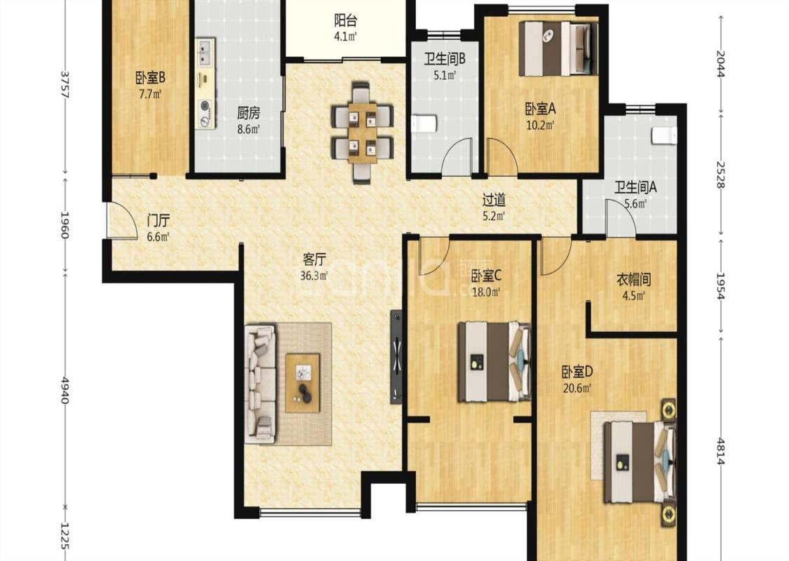 4室2厅 中铁逸都国际(C区)