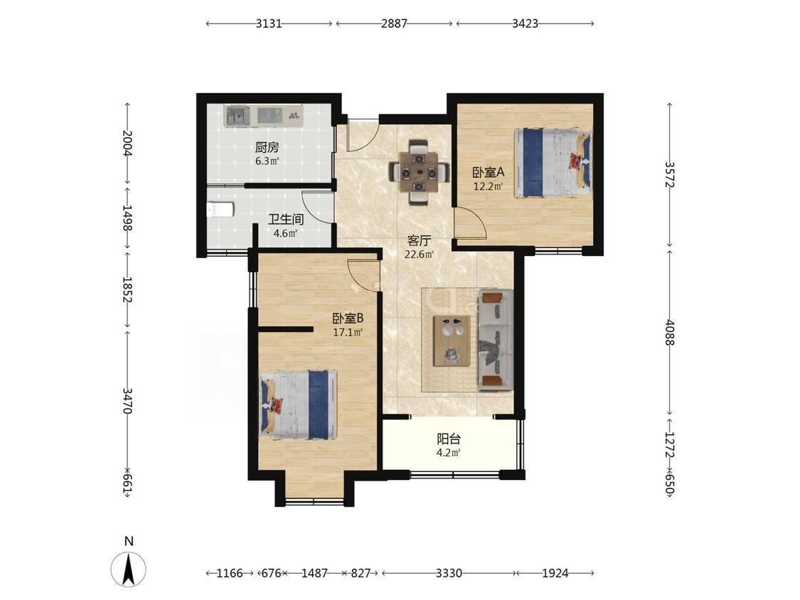 2室1厅 仁锦苑