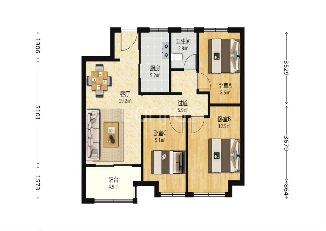 3室1厅 万科翡翠之光