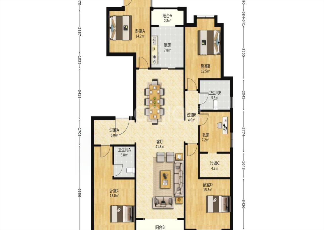 5室2厅 富力华庭(C区)