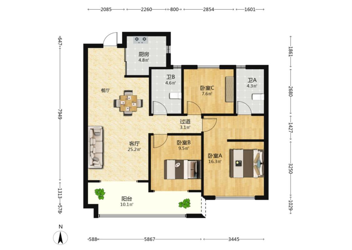 3室2厅 天圣大越府
