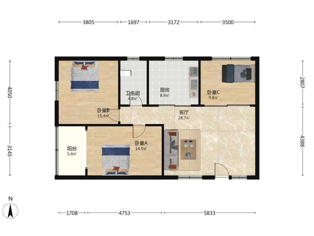 3室2厅 丰富路