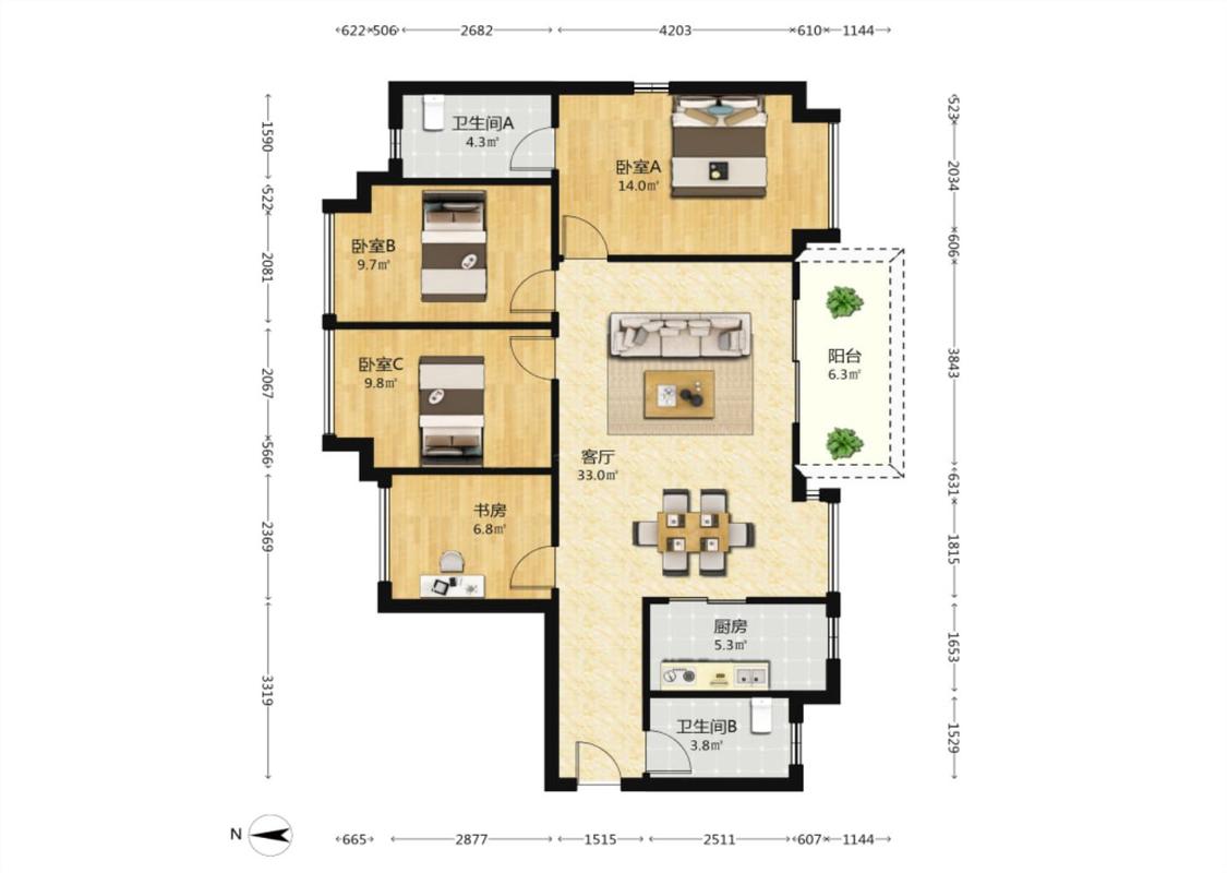 4室2厅 南部湾万科城(四期)