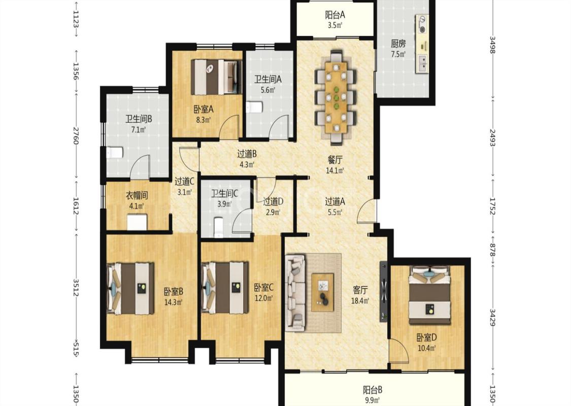 4室2厅 南长安街壹号(三期)