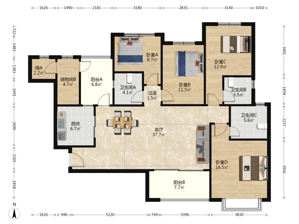 4室2厅 恒大金碧天下(天鸿苑)