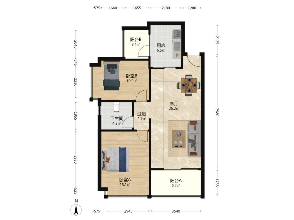 2室2厅 恒大金碧天下(天鸿苑)