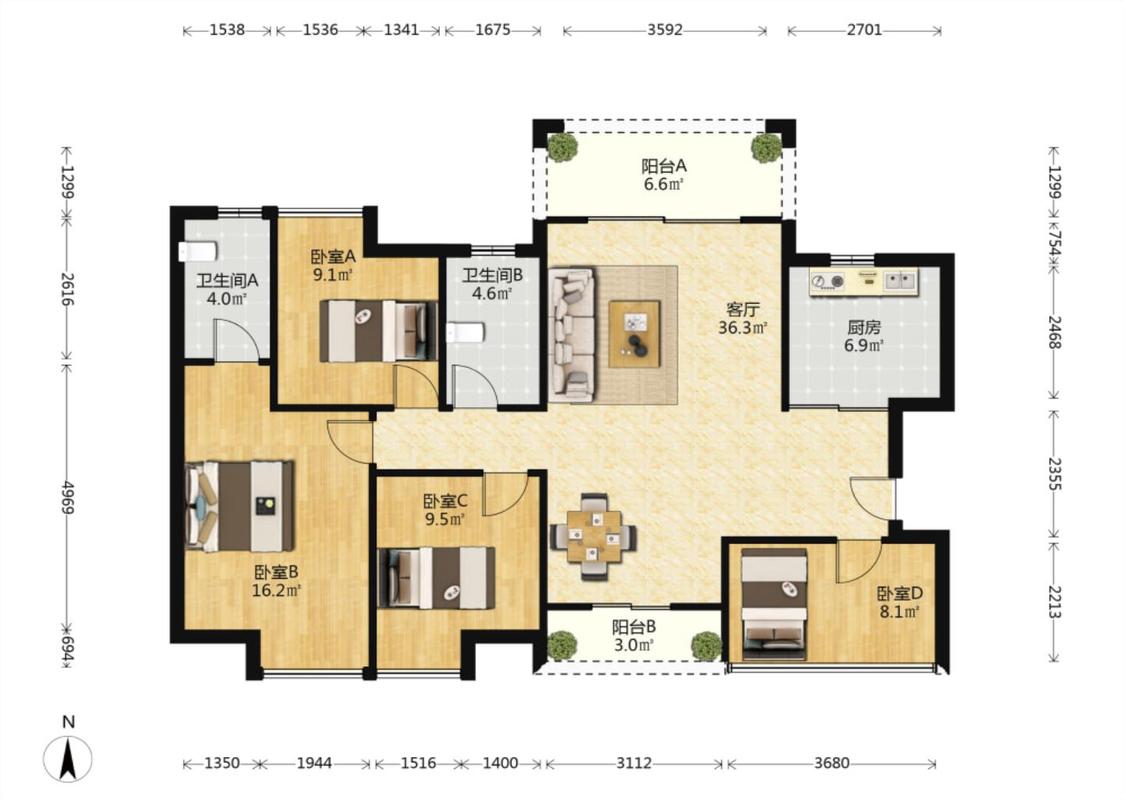 4室2厅 御景公园里