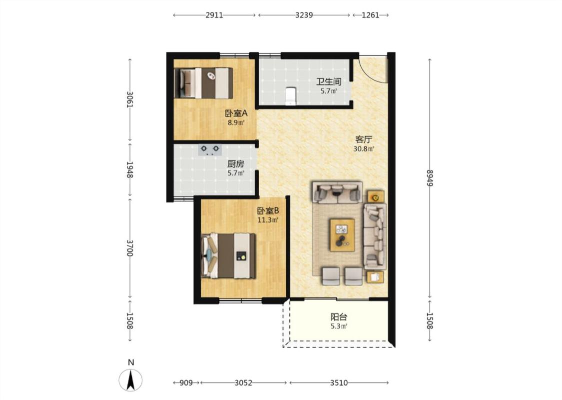 2室2厅 安建九坊世家