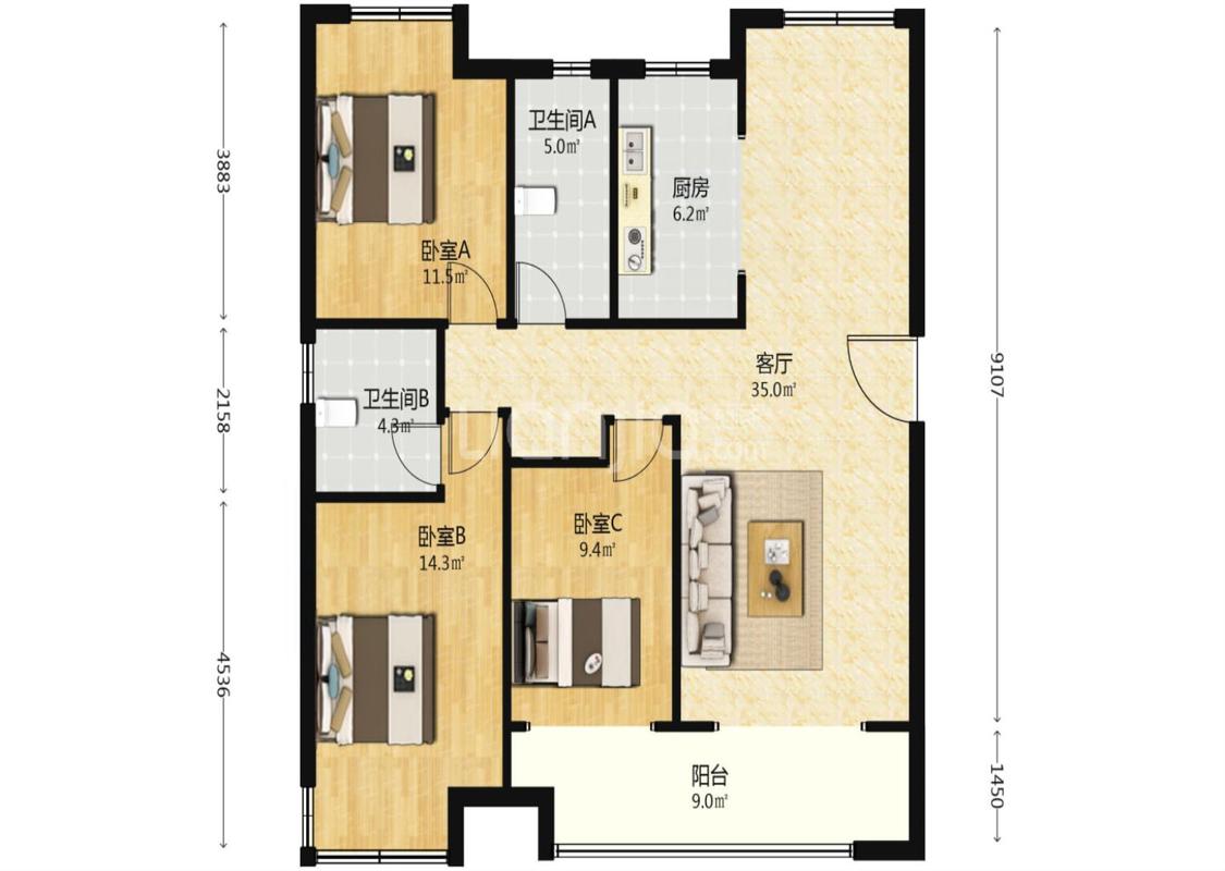 3室2厅