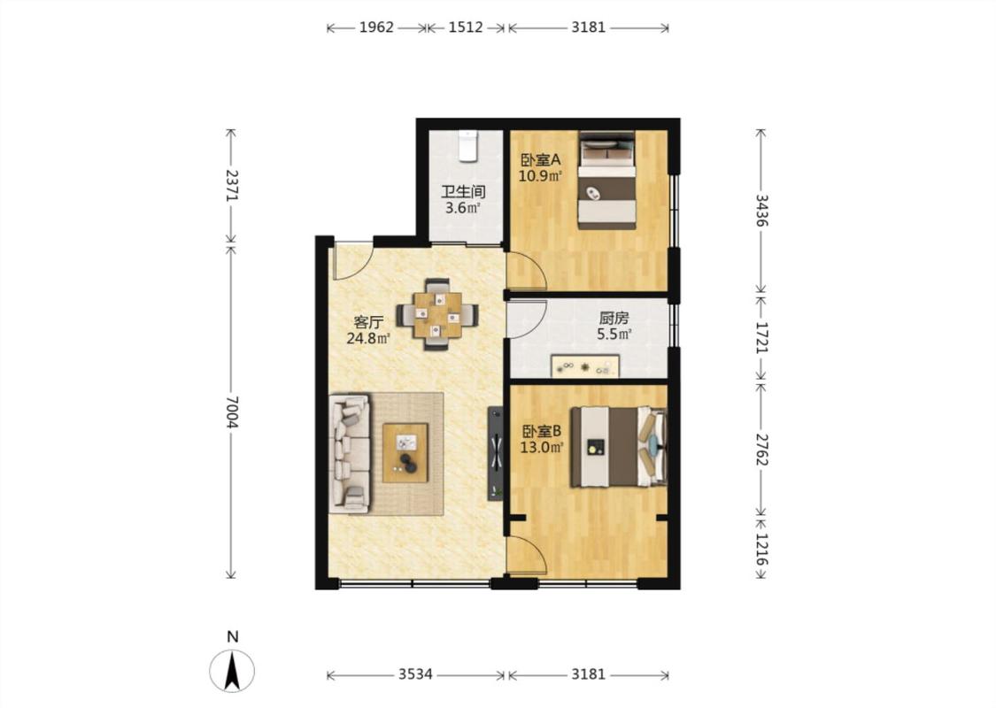 2室1厅 海棠铭居