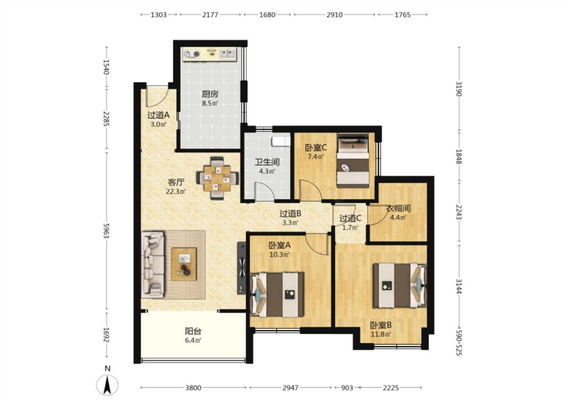 3室1厅 傲城