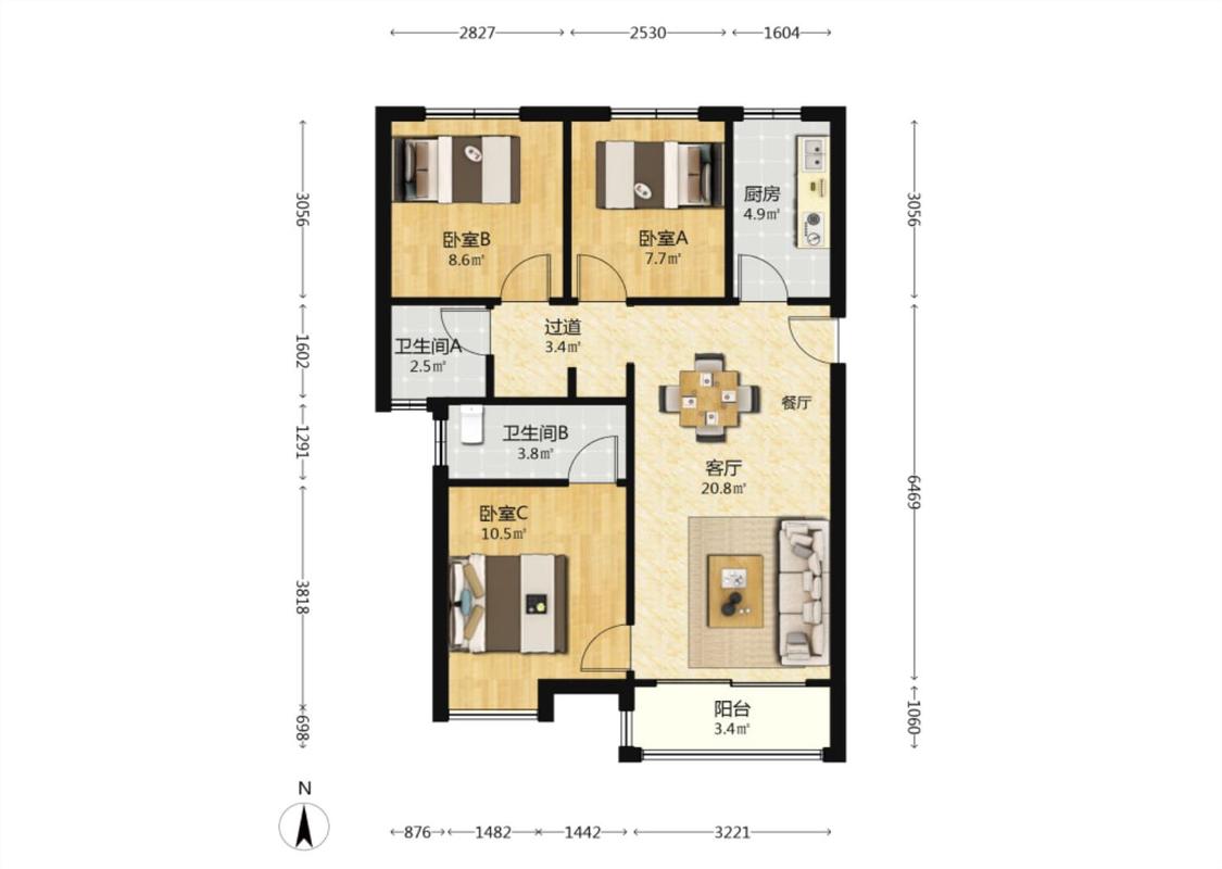 3室2厅 合能公馆