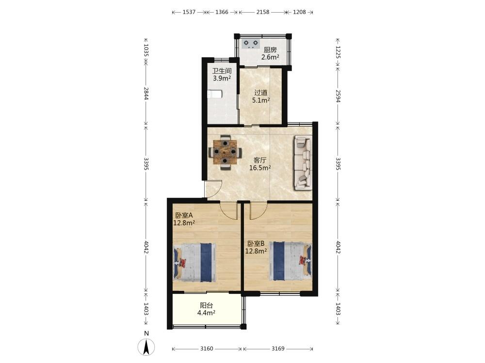 2室1厅 悦民公寓
