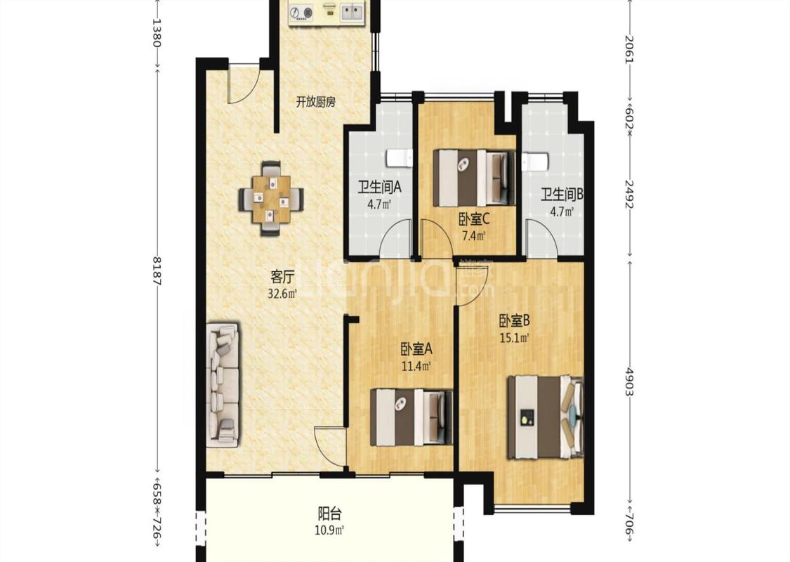 免责声明:房源所示图片及其他信息仅供参考,购房时请以房本信息为准。图片、VR等房屋信息由房源发布机构发布,如有侵权等情况,请在房源展示图片右下侧点击“反馈”联系幸福里找房平台处理。幸福里找房平台禁止经纪人/咨询师“返佣返现”,请您警惕。