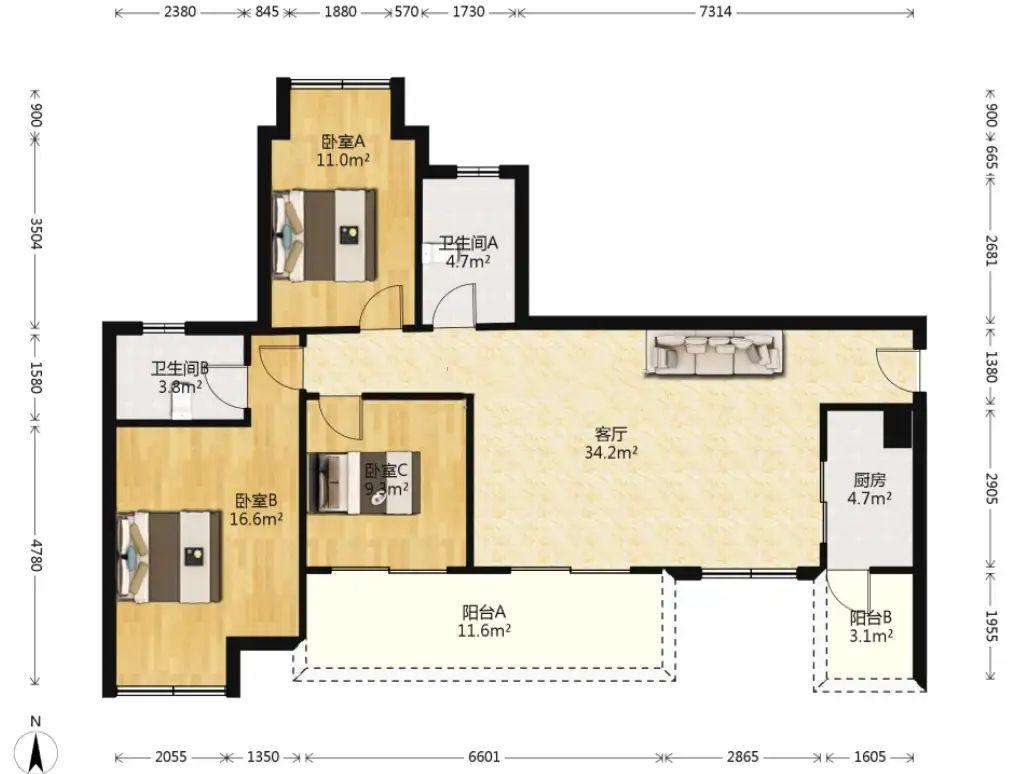 3室2厅 希望未来城(二三期)