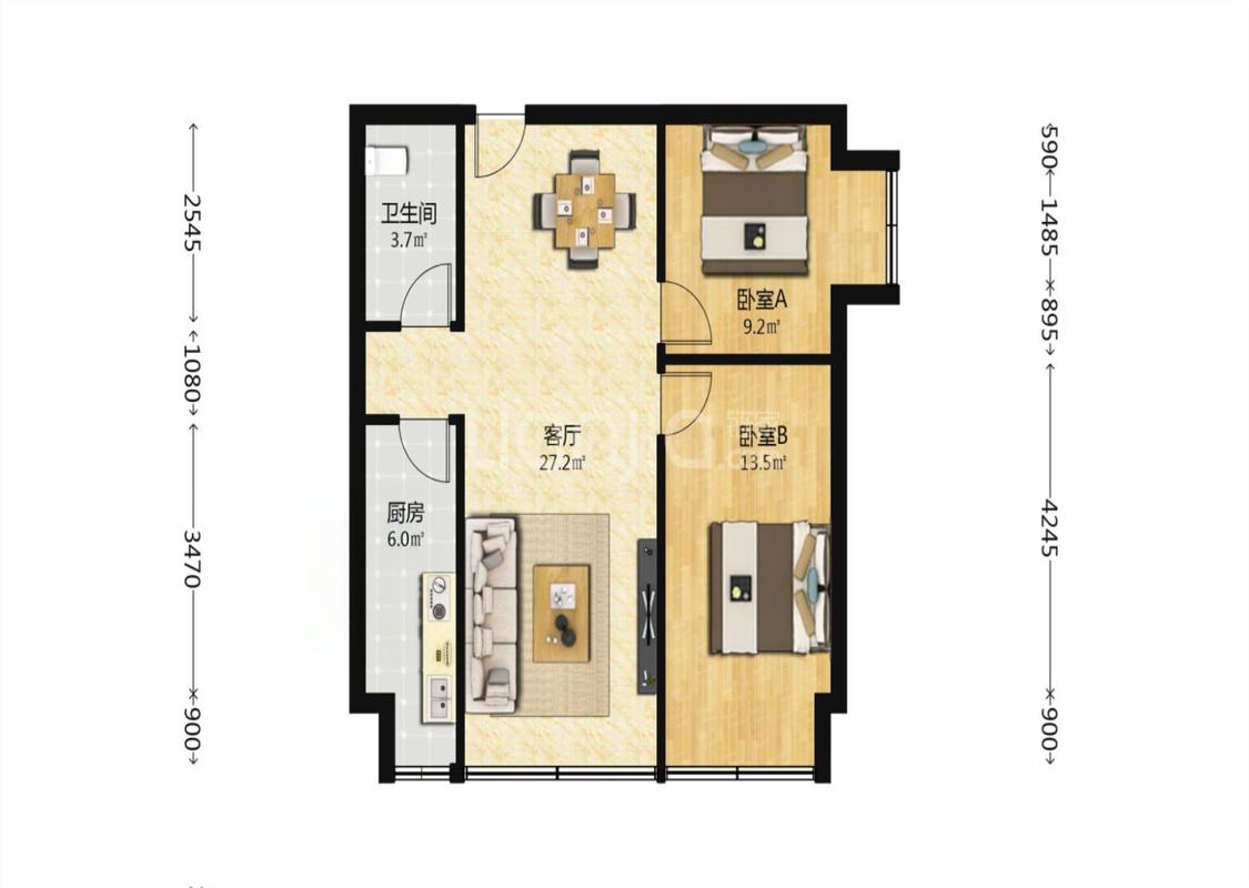 2室1厅 融尚中央住区