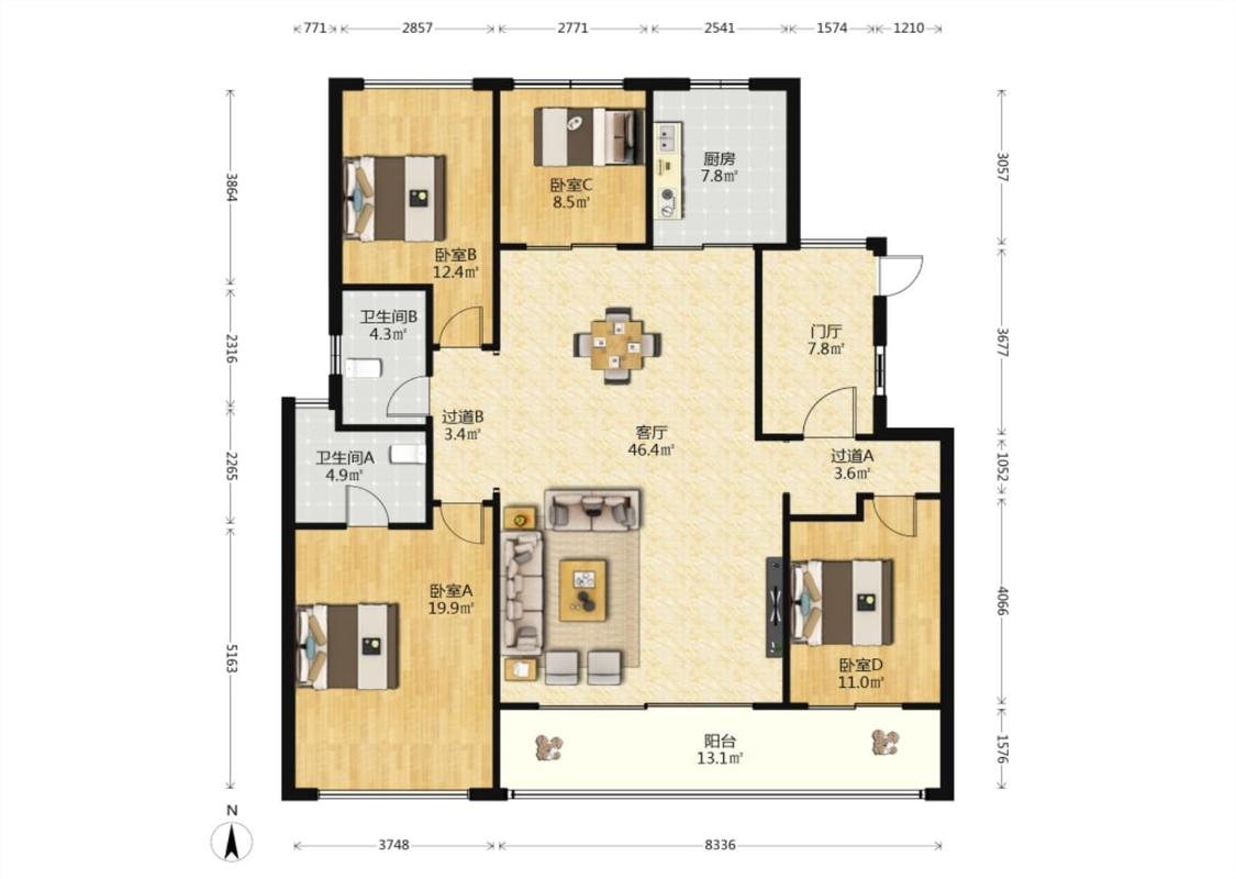 4室2厅 仁恒海棠公园无界