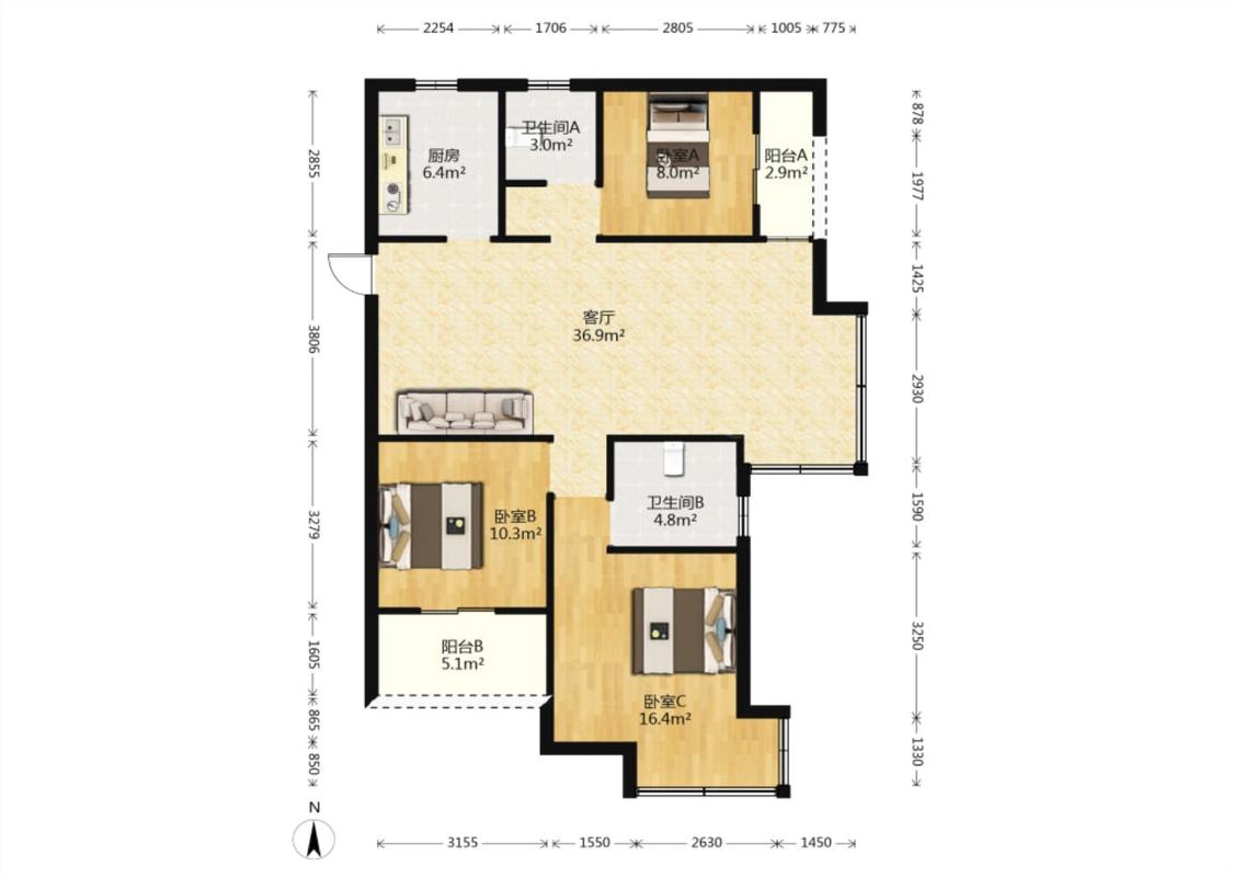3室2厅 雨润新城玉兰苑