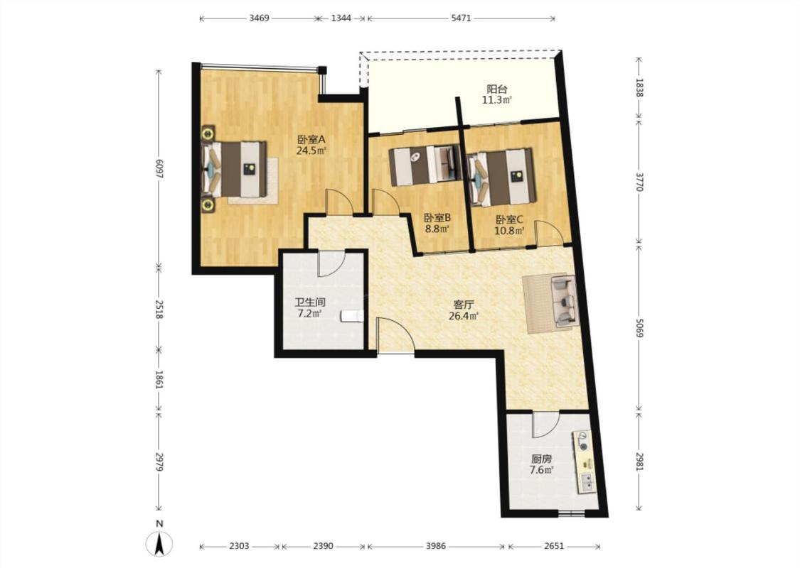 3室1厅 北辰定江洋