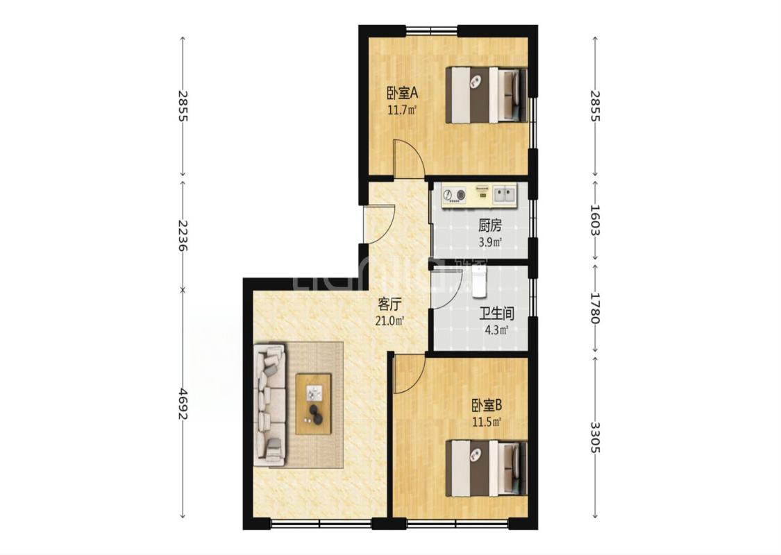 2室2厅 白领公寓