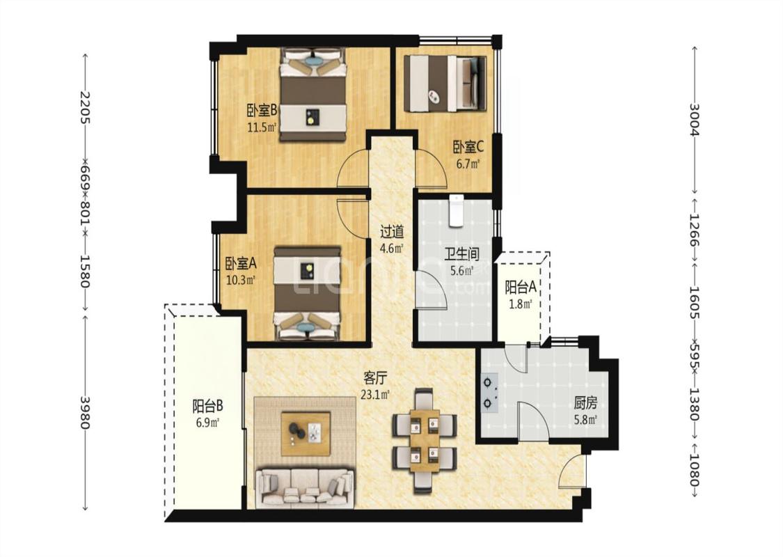 3室2厅 人居东城花汇