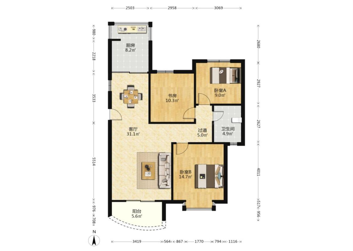 3室2厅 海航国兴城(B区)