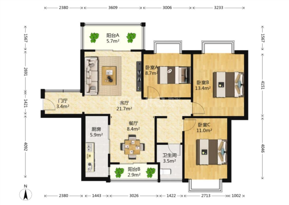 3室2厅