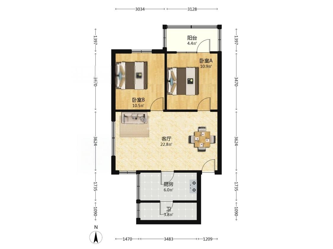 2室1厅 金燕花苑