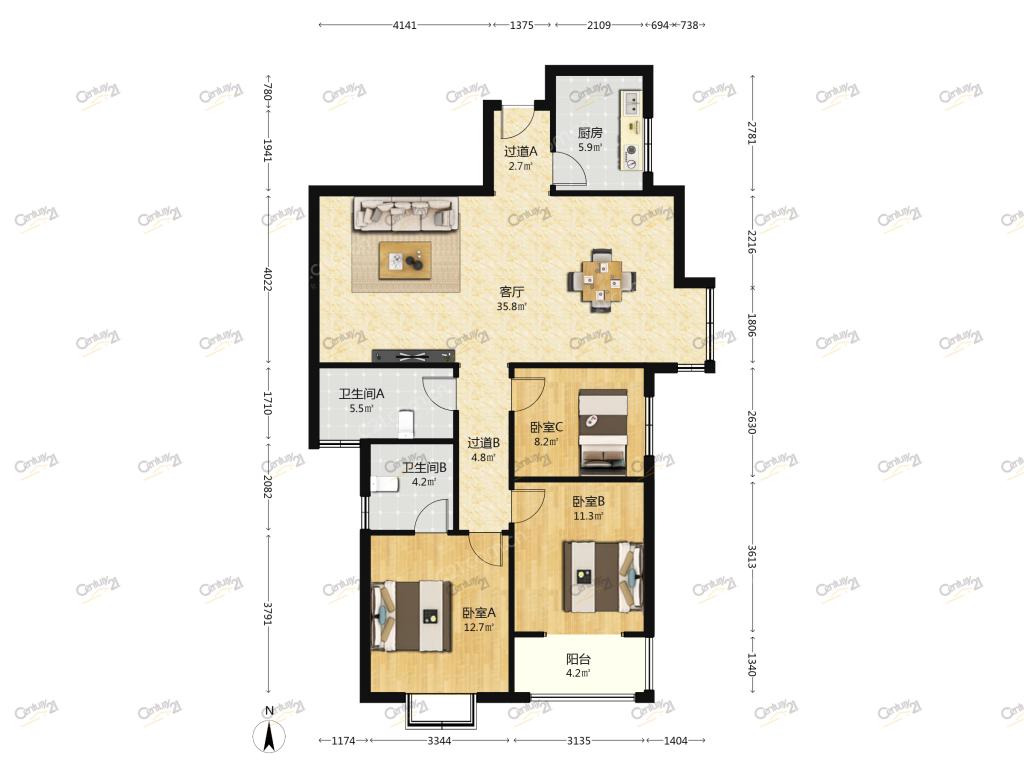 3室1厅 长安相府