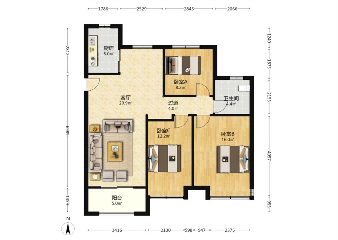 3室2厅 明发新悦城