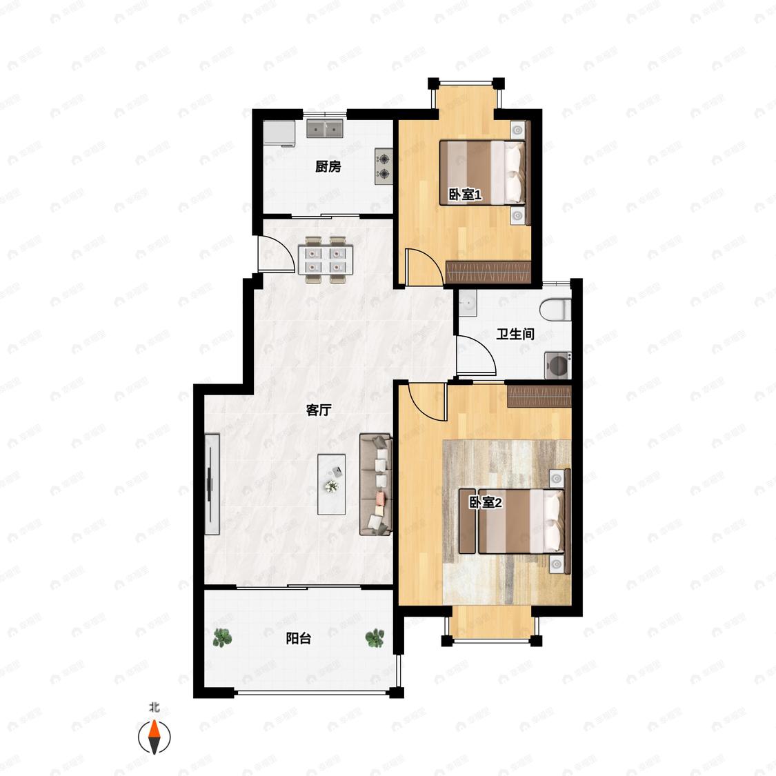 2室1厅 东南悦湖