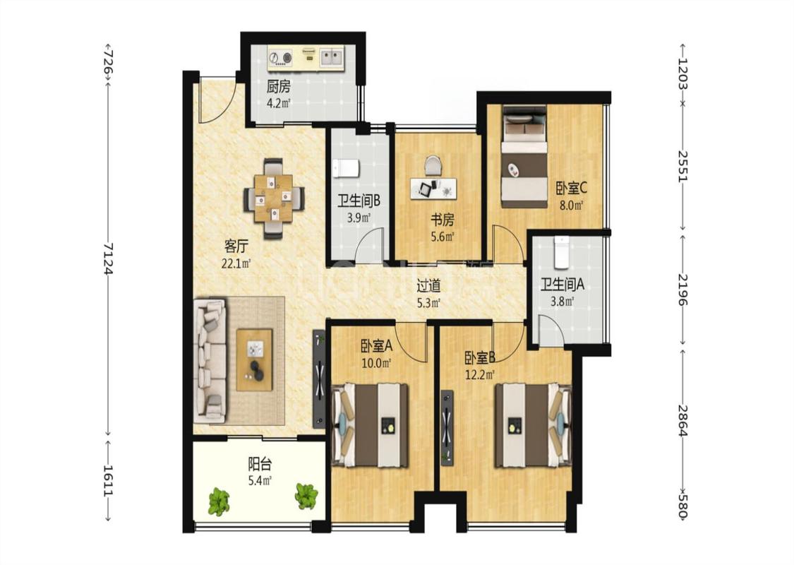 4室2厅 财富兴园中部慧谷(B区)