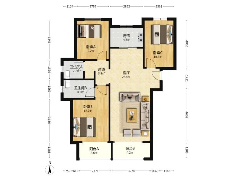 3室1厅 融创观澜壹号