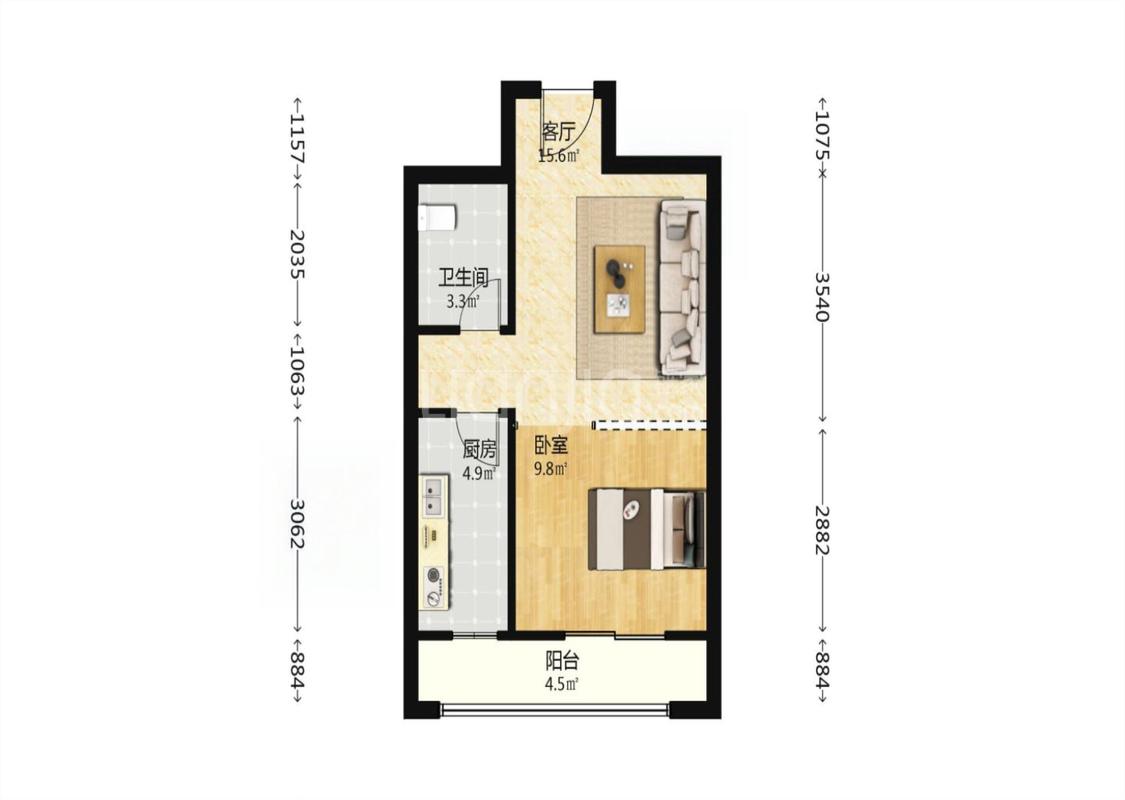 1室1厅 恒大城