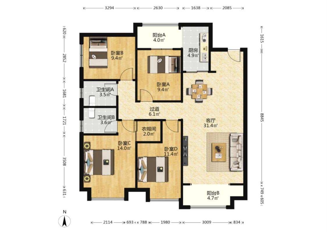 4室2厅 保利曲江春天里